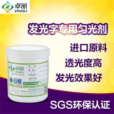 卓麗牌勻光劑是由進(jìn)口樹(shù)脂、進(jìn)口粉料及各種助劑,經(jīng)一定的工藝生產(chǎn)而成。產(chǎn)品高度濃縮,添加量為環(huán)氧樹(shù)脂(A膠)的3%-5%,不影響其他材料的物性;產(chǎn)品分散性好,不分層,不析液;色淺質(zhì)細,增加光電產(chǎn)品中光的散射和透射,遮住發(fā)光源以及刺眼光源,使整個(gè)樹(shù)脂發(fā)出更加柔和、美觀(guān)、高雅的光,達到透光不透明的舒適效果。