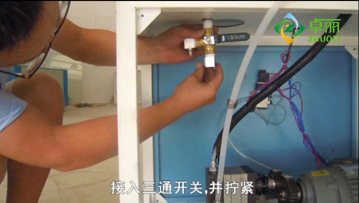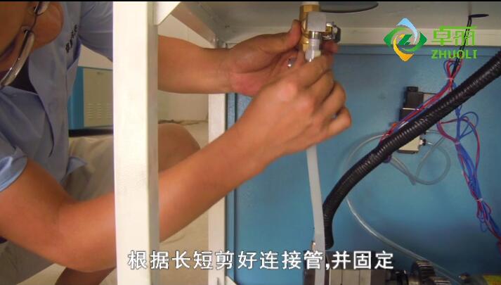 6、清洗桶連接管連接,按要求剪好連接管,并擰緊