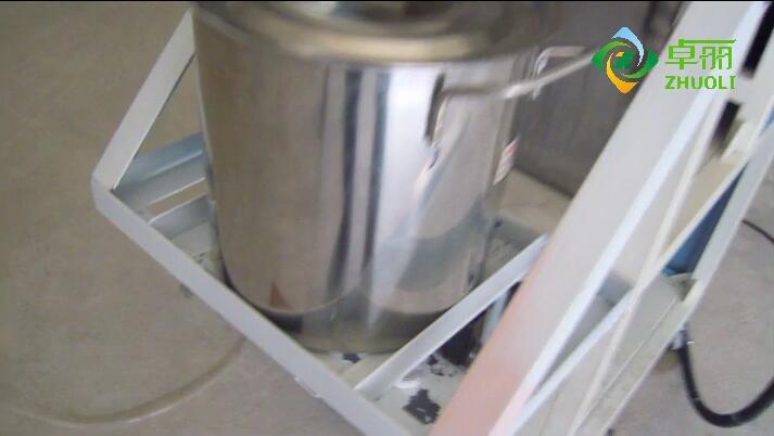 11、往清洗容器桶倒入清洗液(天拿水或二氯甲烷)