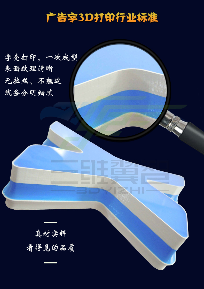 強大的3D技術(shù),為廣告行業(yè)帶來(lái)了創(chuàng )新的一面。當然,三維翼智廣告3D字殼打印機也是起到了引領(lǐng)者的作用,引領(lǐng)走向更創(chuàng )新的未來(lái),三維翼智廣告字3D字殼打印機能夠做你想做,做你所想,凡是尺寸在600mm*600mm*80mm的物體都能夠打印出來(lái),及其功能強大。