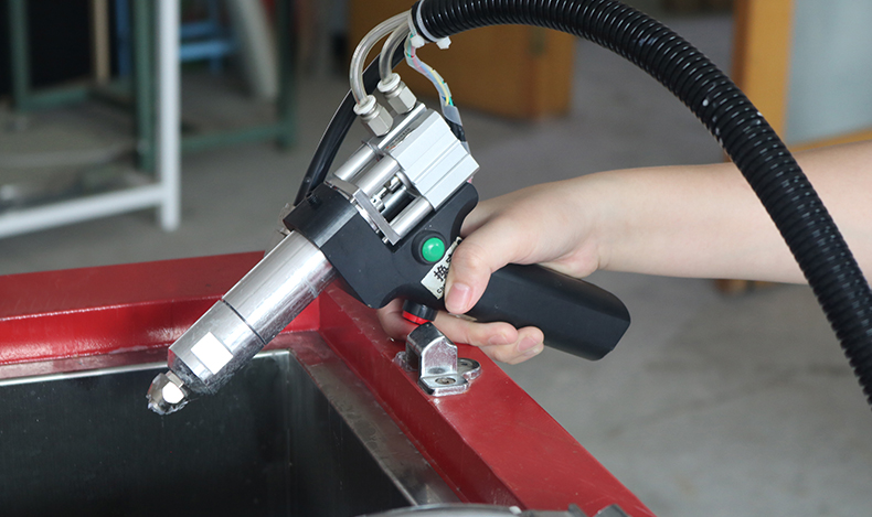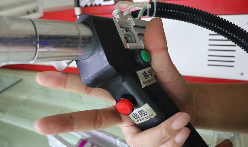 4、清洗完后,關(guān)掉膠槍上的【出膠】按紐,然后按膠槍上的【換字】按紐,再啟動(dòng)膠槍上的【出膠】按紐,這里把膠桶里的清洗液打到干凈的清洗液桶就行。