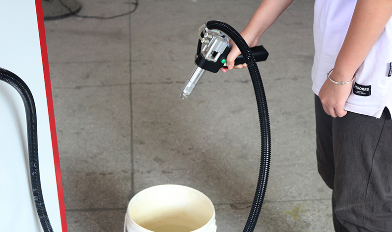 把膠槍夾到蓋子那里,讓它循環(huán)打膠清洗。循環(huán)打到膠水桶中,大概打5-10分鐘。如果要清洗更干凈可以順便用刷子稍微刷下膠桶邊緣。
