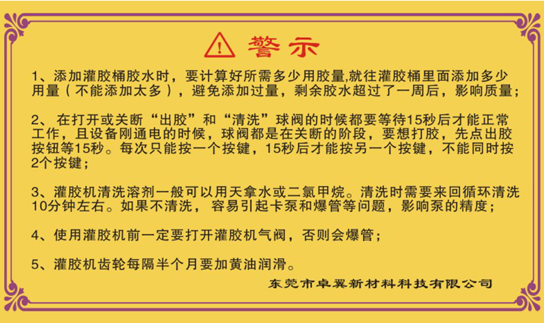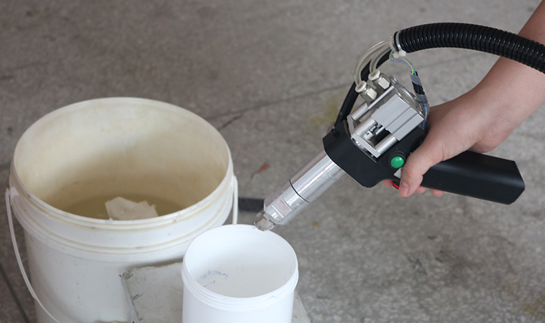 3、設置好,就用膠槍往膠水桶打清洗液,打完300g就自動(dòng)停止了。
